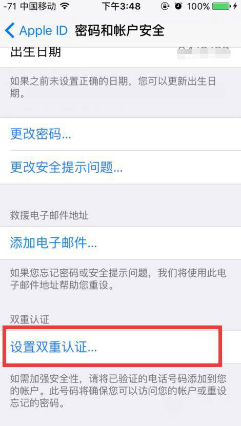 3、点击完成后在页面最下方点击【设置双重认证】选项