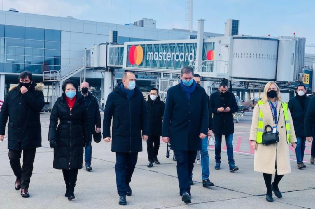 当地时间1月16日,塞尔维亚总统武契奇亲赴机场迎接首批100万剂中国产新冠疫苗的抵达。