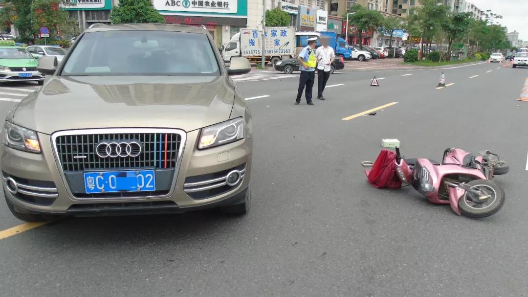 经调查,当时奥迪司机石某沿白藤二路右转进入湖心路,这条路石某很熟悉,他知道湖心路上车流量大,眼睛只顾着看左侧车流情况,忽略了右边突然冲出来的电动车。而驾驶电动车的张女士从路口开出,她也看见奥迪车,以为奥迪车会停车礼让,没想到预判出错,奥迪车还是撞上了电动车。