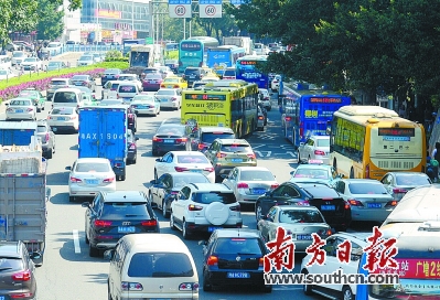 2日,广州银河园公墓迎来扫墓小高峰。天河区燕岭大厦往银河园方向出现交通拥堵,许多市民坐车前往扫墓祭祖。南方日报记者 肖雄 摄 - 新浪广东