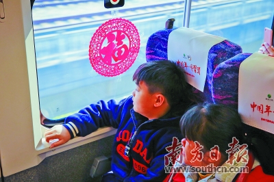 2月6日,返乡列车上的小朋友靠着车窗看回家路上的风景。南方日报记者 吴伟洪 董天健 摄 - 新浪广东