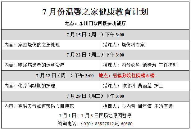 7月份温馨之家健康教育计划