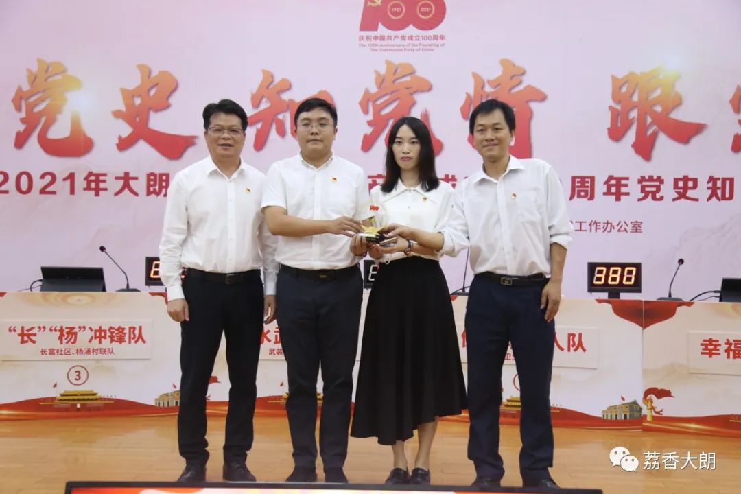 经过激烈的角逐,最终“跟党走就队”凭借出色的临场发挥和扎实的知识功底获得一等奖;“健康守门人队”、 “‘长’‘ 杨’冲锋队”分别获得二、三等奖。其他5支队伍获得优胜奖。镇党委副书记谢伟良、镇党委委员蔡培光、梁云聪等领导观看了比赛并为获奖选手颁奖。