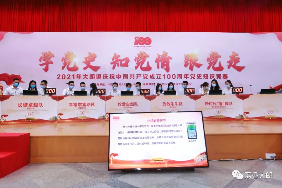 7月29日下午,“学党史、知党情、跟党走”2021年大朗镇庆祝中国共产党成立100周年党史知识竞赛在大朗镇政府会堂举行,20支参赛队伍比拼较量,场面紧张激烈。
