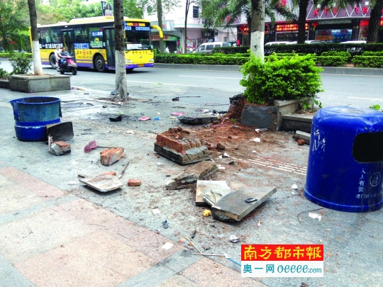 南都记者在现场看到,路边花坛的水泥围墙已被撞飞一大块,一个垃圾桶则被直接撞飞。据现场的医护人员透露,事故中一名女性清洁工被卷入货车车轮下,后经消防官兵到场才救了出来并被紧急送院。抢救持续至上午9时许,因伤势过重,清洁工最终抢救无效身亡。