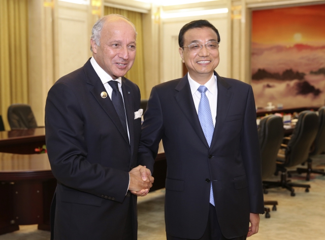 李克强总理会见法国外长法比尤斯时说:“希望把中法第三方合作和核能合作做成‘南北合作’的示范项目,做成推动世界经济向复苏方向前行的引导性项目。”