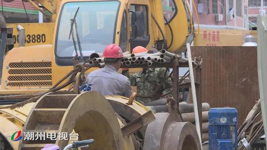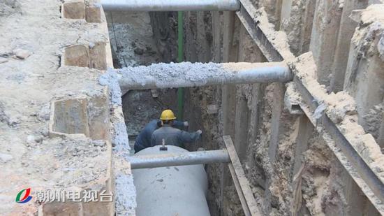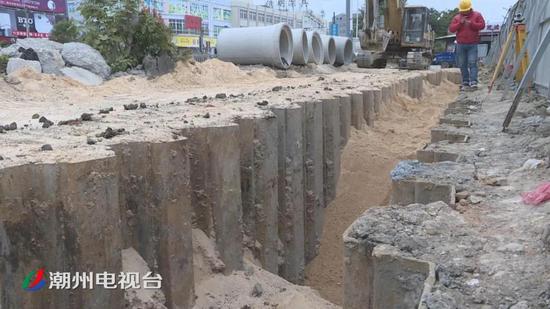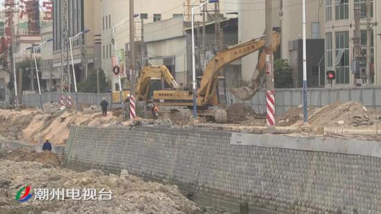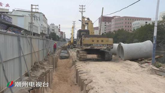 在枫溪区西溪东路的施工现场,工人们正对三利溪一侧进行截污纳管的施工。