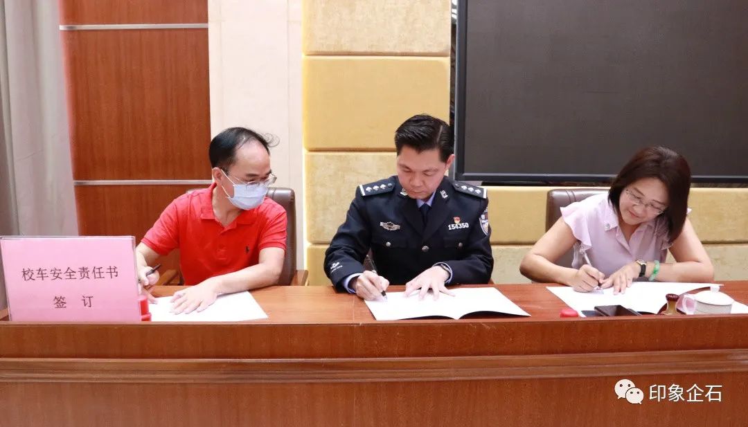 会议传达了校车安全管理工作的基本情况和工作要求,并针对学校交通安全、校车安全管理工作作详细的部署。会上,企石交警大队、教育管理中心和校车使用单位代表签订了校车安全管理工作责任书。