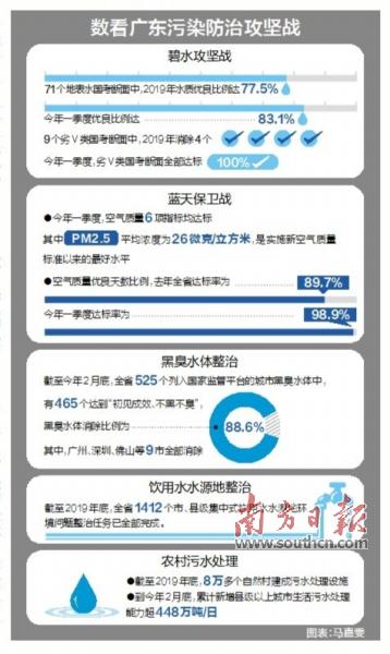 今年,广东省将围绕地表水优良率达标、消除劣Ⅴ类国考断面、AQI达标率三项约束性任务,以臭氧污染防控为核心,综合整治重点企业、工业园,推动出租车、泥头车等电动化,从源头减排挥发性有机物和氮氧化物。加快重点治污工程复工复产,发挥治污设施减排效益,完成消除劣Ⅴ类和优良率84.5%以上的目标。做好土壤污染防治、水源地保护、近岸海域污染防治、农村污染治理等。