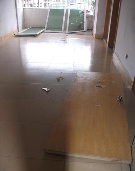 “阳台推拉门被拆下、玻璃被打碎、卧室木门躺在地上、所有电源开关线路被剪断,”8月11日,许先生位于宝安区27区景晖丽苑的一套商品房里一片狼藉,“连马桶都被打了个洞。”许先生说。