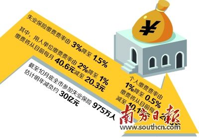 截至2015年10月底,全市参加失业保险975万人(由于大量外来务工人员的流动,每月人数都会有变动,尤其春节前后变动最激烈)。预计在缴费费率下调后,2015年12月当月可为用人单位和职工减负2.97亿元,2016年全年可为用人单位和职工减负约30亿元。