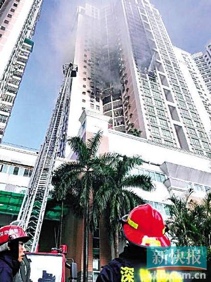 深圳罗湖33层住宅大火无人伤亡 4名消防官兵虚脱