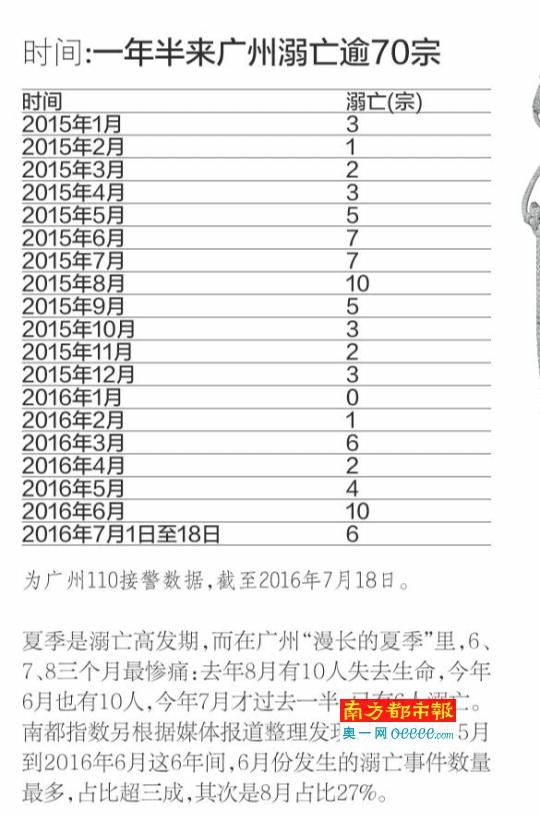 夏季是溺亡高发期,而在广州“漫长的夏季”里,6、7、8三个月最惨痛:去年8月有10人失去生命,今年6月也有10人,今年7月才过去一半,已有6人溺亡。