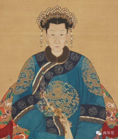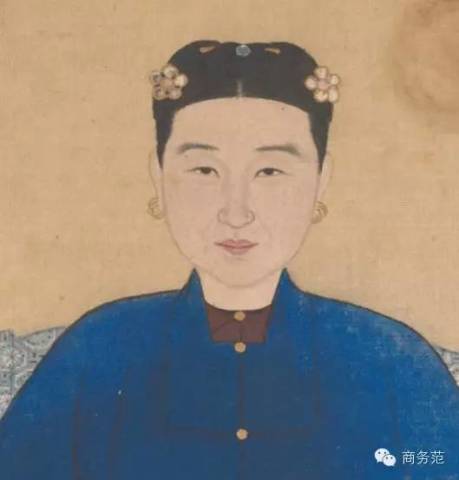 清早期旗人女子多是辫发盘头,或者是包头。比如我们常见的孝庄皇太后常服袍坐像(局部)
