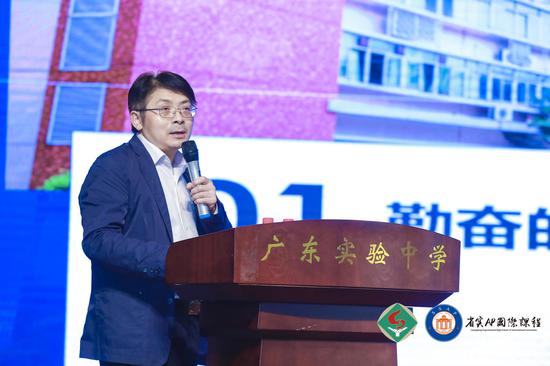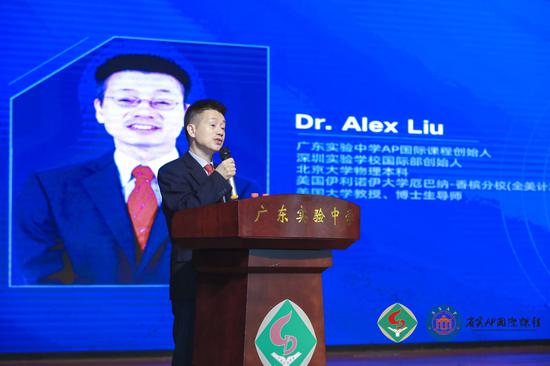 广东实验中学党委副书记朱伯东上台致辞随后,省实AP创始人Alex Liu刘博士亦上台致辞。他总结了省实AP过去所取得的成绩,表示省实AP已经走上了高质量发展的道路。发言中,他对未来的国际教育提出了自己的预判与展望,并透露省实AP将推出多项举措,实现全面升级。他相信在省实的大力支持下,随着新哲楼的启用,设施设备的升级,省实AP师生的教学与生活环境将进一步得到提升,更好的成绩、更大的辉煌也指日可待!