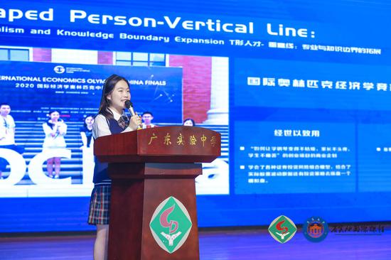高二5班学生郑斯尹作为学生代表,分享了其对未来学习能力的思考。郑斯尹同学认为,未来学生需要具备T型能力(T-shaped person)、包容性创新(Inclusive Innovation)、终身学习(Life-long learner)三方面的能力。T型能力一是需要学生具备专业领域的知识,二是要培养学生综合素养,如未来领导力、时间管理能力、项目管理能力、公众演讲演示能力等。在斯尹看来,包容性创新主要是以核心构建社群,把小我价值的实现,融入集体的进步,用自我身份的认同,带动集体身份的认同。而终身学习则关键在于目耕、口耕、笔耕。