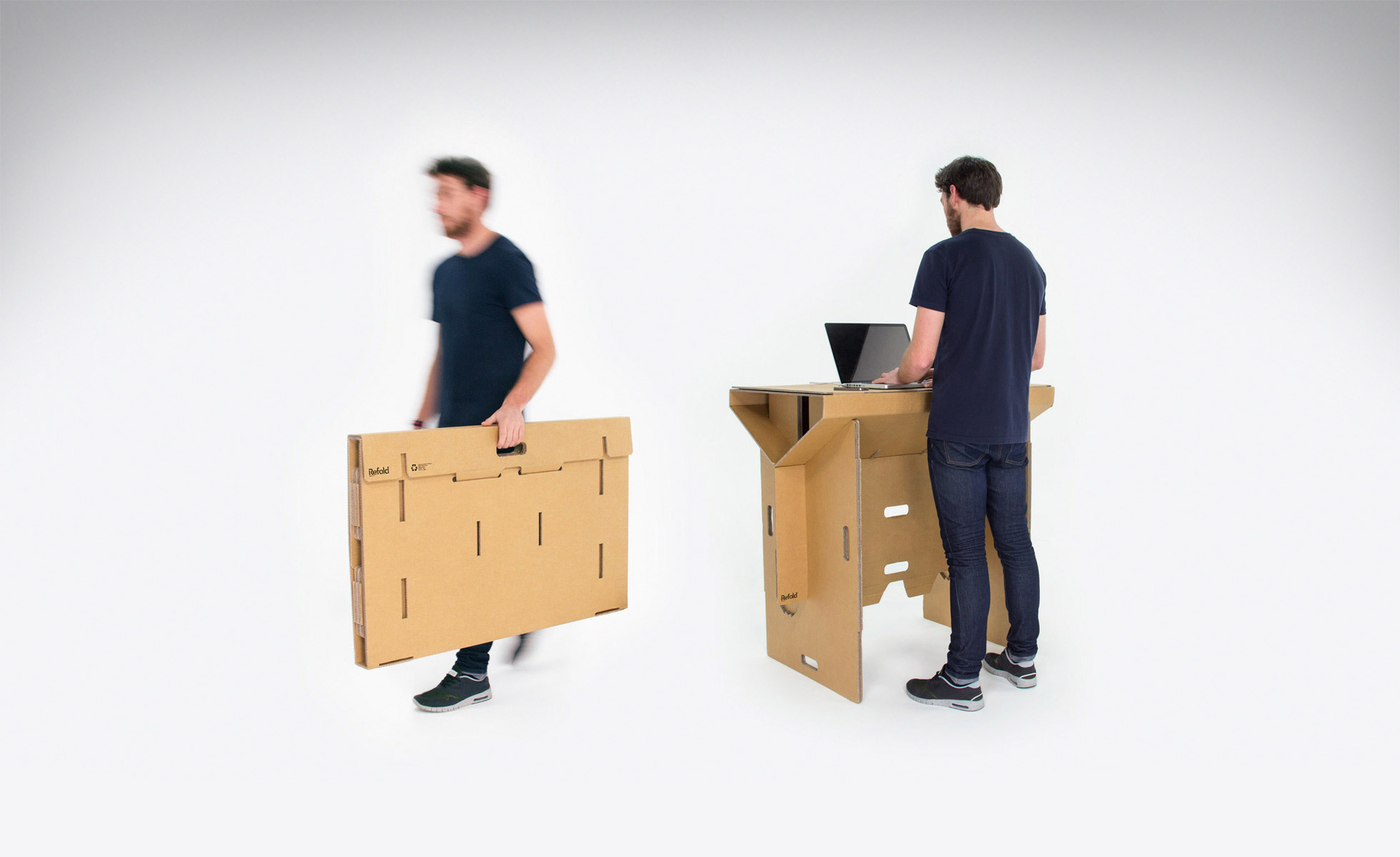 如果你一直在寻找一个简单易用的站立办公桌,Refold折叠桌就是不错的选择。它的重量仅14磅(大概12.7斤),完全由环保材料纸板制成的。
