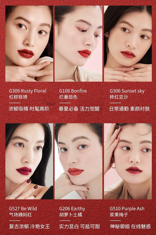 G527 Be Wild 气场姨妈红 G206 Earthy 胡萝卜土橘 G510 Purple Ash浆果梅子