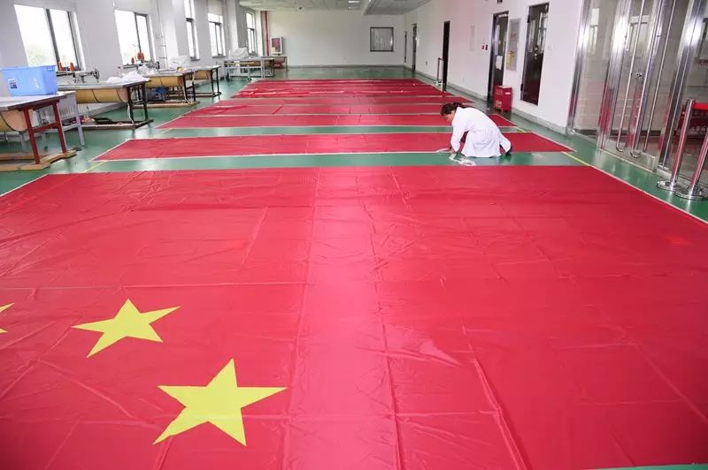 红旗布料是由专门厂家特制的。每次到货后,研制人员就把布料悬挂起来,用50多个强光灯组成的灯阵照射布料,对布料的密实度、染色均匀度、颜色在光照下的效果等进行细细检验,确保用于红旗加工的每一寸布料都符合要求。