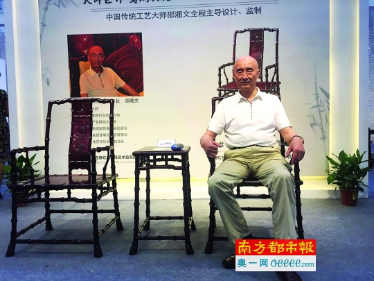 在深圳会展中心9号展馆的泰和园展厅内,这两把竹节椅和一个茶几摆在最尊贵的位置。“有些人说这椅子坐着不太舒服,你坐坐看,是不是很舒服?”邵湘文是竹节椅的设计者。去年,他获“中国传统工艺大师”称号,当年全国只有三人获此荣耀。