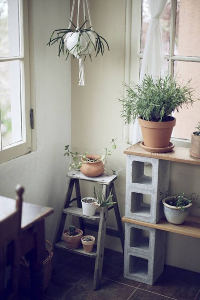 谁说水泥砖花盆一定要贴在墙面?它们也可以独立出来,放在楼梯入口处,花园,露台都有装饰效果。