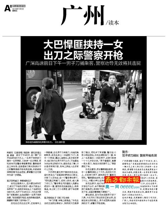 南都讯 记者饶丽冬 11月3日下午,在广深高速一辆广州开往深圳龙华的大巴上,一名男子突然拔刀捅伤男乘客后又劫持女乘客,最终被警察开枪击毙。昨日,被捅伤的男乘客田先生表示车站与大巴公司事后一直没有出面,理赔问题无人沟通。