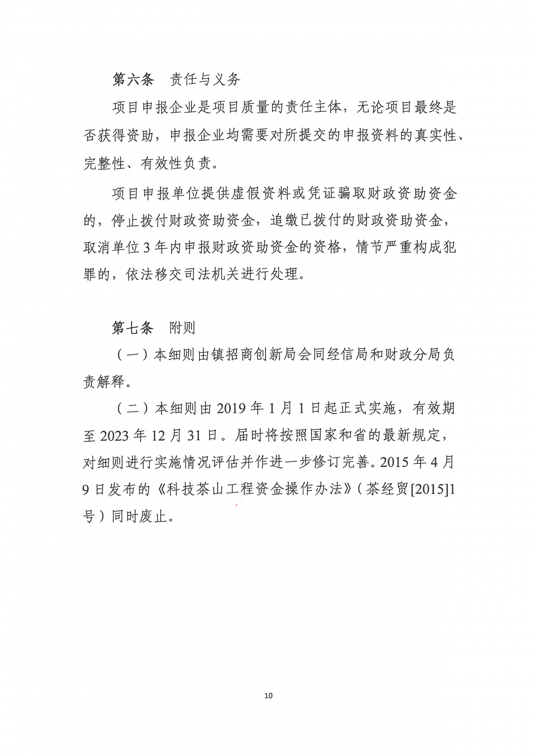 2、《茶山镇进一步扶持非公有制经济高质量发展专项资金实施细则(科技类、经信类、金融类)》(茶招创[2019]1号)