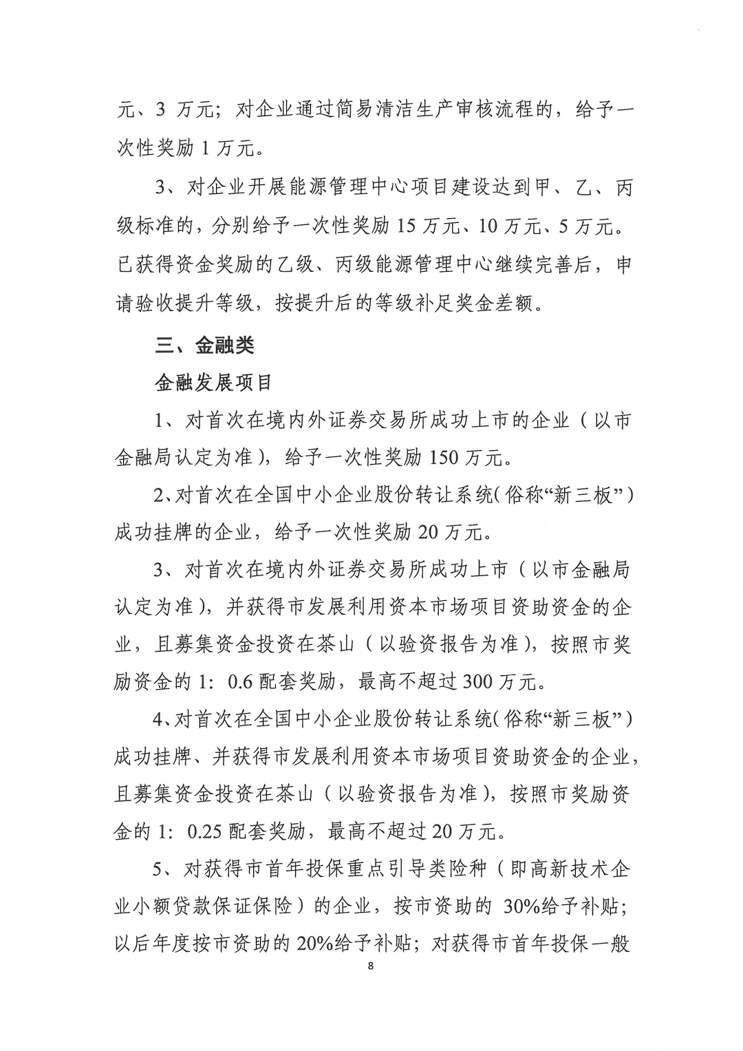 (三)金融类: 境内、外成功上市的企业、“新三板”成功挂牌的企业以及已获得市资助的科技保险项目。(咨询电话:骆先生,86640969、86640539)