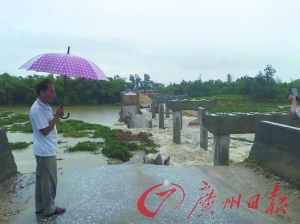 廉江西山大桥洪水中坍塌 数万人出行受阻