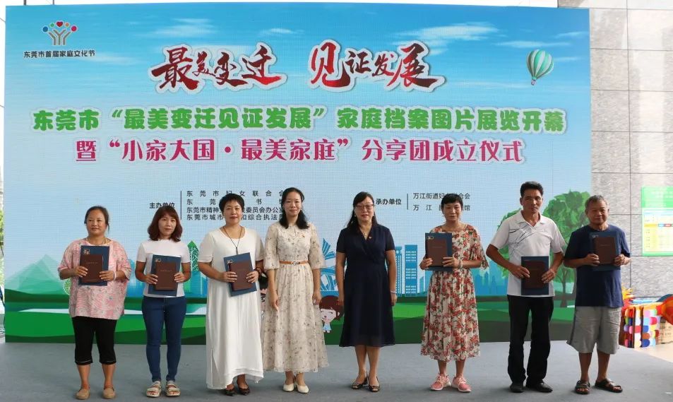 莞邑家庭心向党,家教家风永传承。为深入学习贯彻习近平总书记“七一”重要讲话精神,学好用好《习近平关于注重家庭家教家风建设论述摘编》,全力推动落实《进一步加强家庭家教家风建设的实施意见》,落实精神文明委九大行动之传承弘扬好家教好家风行动,打响“家”字品牌,展示莞邑家庭美德,进一步培育和践行社会主义核心价值观,促进和弘扬家庭文明新风尚。市妇联联合东莞图书馆、市文明办开展东莞市家庭文化节特色活动之“最美变迁见证发展”家庭档案图片展览开幕暨“小家大国·最美家庭”分享团成立仪式活动。