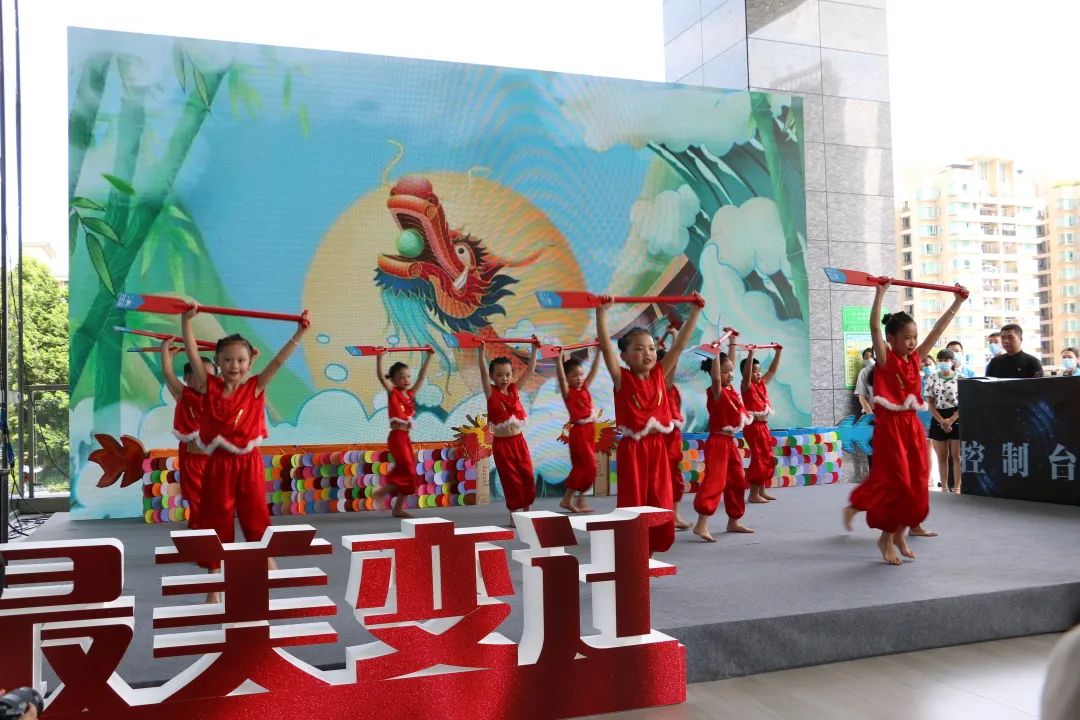随后,舞台上上演了一出特殊的舞蹈——龙舟舞,孩子们用他们稚嫩的身躯舞出了龙舟的阳刚。赛龙舟是我们的传统文化,孩子是祖国的未来,舞台上,过去与未来无暇的融合在了一起。