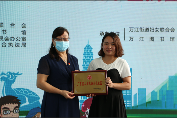 同时,也借此盛会,市妇联向万江谷涌社区颁发“广东省儿童友好示范社区”牌匾。