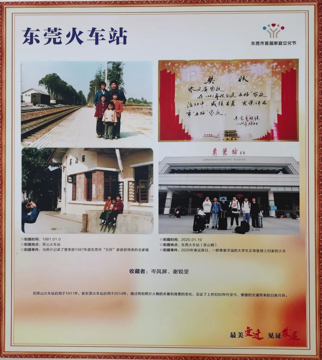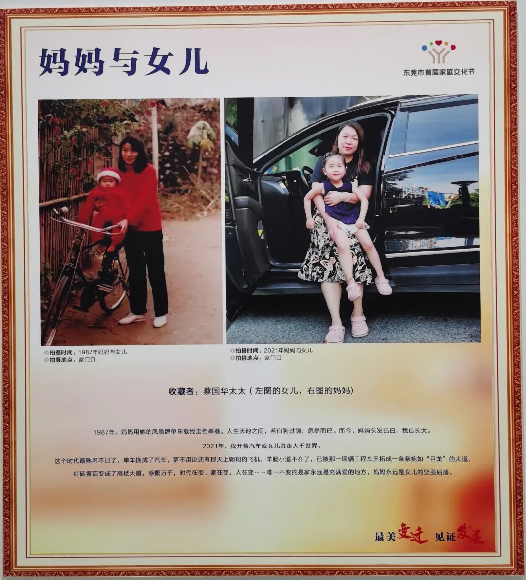 解码东莞城市历史,溯源东莞发展之旅。8月16日,“最美变迁见证发展”家庭档案图片展览暨“小家大国·最美家庭”分享团成立仪式在万江图书馆盛大开幕。展览共计展出近130张优秀作品,以家庭为窗口,通过家庭主题的新、旧照片组图,带领观展者在时空间穿梭,感受时间在东莞这座城市留下的印记。家是最小国,国是千万家,每个家庭都有自身独特的故事,最美家庭分享团以自身的故事出发,与你一起探讨经营家庭的良策,为奋力推动东莞在万亿元GDP、千万人口城市新起点上加快高质量发展、实现中华民族伟大复兴中国梦汇聚强大家庭力量。