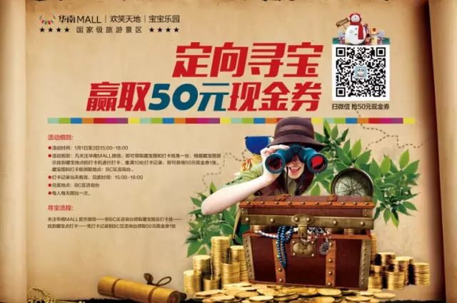 传说中的藏宝图来了,只要关注华南MALL微信,即可领取藏宝图一张,按图找到指定藏宝点,轻松获得50元现金券。