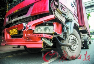 广州日报讯 (记者苏俊杰摄影报道)昨日下午2时许,一辆车牌为“鲁RB6508”的红色大货车在海珠区工业大道中北往南方向与石岗路交界的石溪公交车总站附近,连撞8车后才停下。据目击者何先生回忆,“当时货车车速较快,接近石岗路口的红灯位置依然不减速,虽然货车司机在拥挤的马路上不断调整方向,避免更多碰撞,但还是碰撞到两旁的多辆车,十分惊险。”记者在现场看到,被大货车直接或间接撞到的车辆包括4辆小轿车,2辆小货车,1辆出租车和1辆环卫扫路车,8辆被撞车辆都有不同程度的损毁,而大货车左侧车头和车身都有多处碰撞痕迹。何生告诉记者,这个路口车多人多,这次事故没有造成人员伤亡也算万幸。