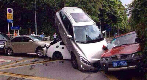 昨日下午,一辆重型作业车在深圳梅岗南街北往南行驶时,怀疑遭遇车辆刹车失灵,径直撞向路边一排4辆小车,依次撞击下的头车再横向侧面撞击第5辆小车,造成6车相撞的事故。事故中,两人受伤被送医院检查。