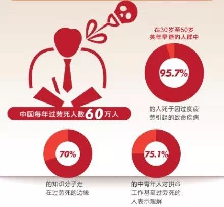 “过劳死”是因为工作时间过长,劳动强度过重,心里压力太大,从而出现精疲力竭的亚健康状态,突然引发身体潜在的疾病急性恶化,救治不及时而危及生命。