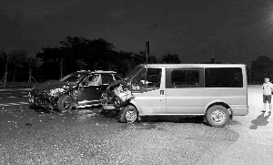 面包车与保时捷SUV迎面相撞 市民质疑因路灯不亮