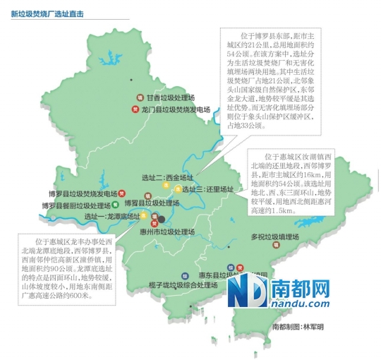 龙丰龙潭底、博罗西金、汝湖还里新市垃圾焚烧厂地址三选一