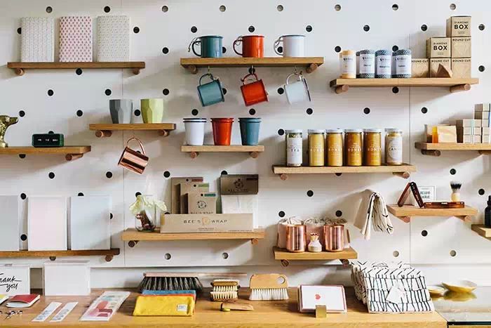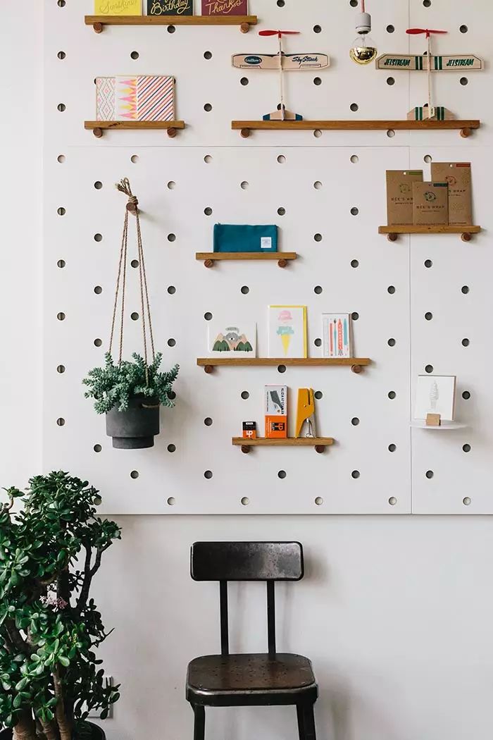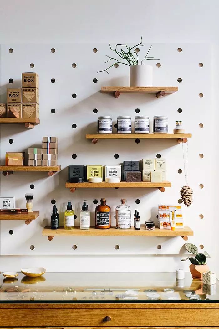 Loyal Supply Co是一家集设计、创作,产品销售于一体的工作室,位于麻省Somerville市的联合广场旁,由Kimberly LaFoy和Ryan Habbyshaw两位设计师共同成立。工作室是一个简单的Loft结构,二楼用来办公,一楼则是零售空间和Kimberly创作的区域,比较特别的是工作室的墙壁上装满了有着无数个圆孔形状的储物板,用来摆放需要售卖的产品,使整个墙壁既是销售的陈列柜,又为空间增添了无数个丰富而有序的灵活设计。