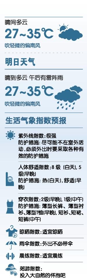穗今明阳光强烈最高气温36℃ 周末有中到大雨局部暴雨