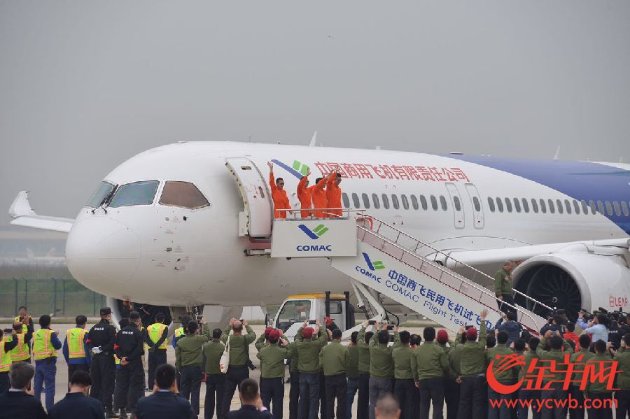 圆满完成所有任务,c919首飞圆满成功 金羊网记者 林桂炎 摄