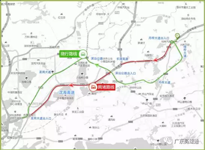 沈海高速(丹梓大道出入口-龙岗大道出入口)也易拥堵,绕行可从丹梓大道出入口下高速,沿丹梓大道-深汕公路-龙岗大道行驶,在龙岗大道出入口上高速。
