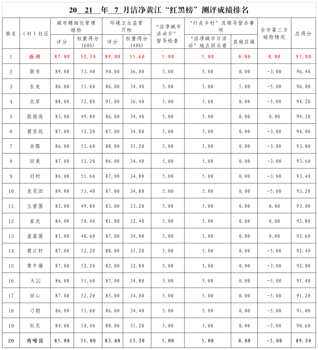洁净黄江7月“红黑榜”出炉,这条村亮点纷呈