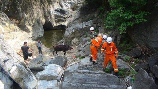 老黄牛失足困深潭4天被消防官兵救起