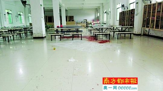 昨日中午,南都记者回访现场时,该公司食堂外仍悬挂着警戒线。进入食堂大厅,距离门口不远的用餐区有一大摊血迹,餐厅多处可看到血脚印和血滴。